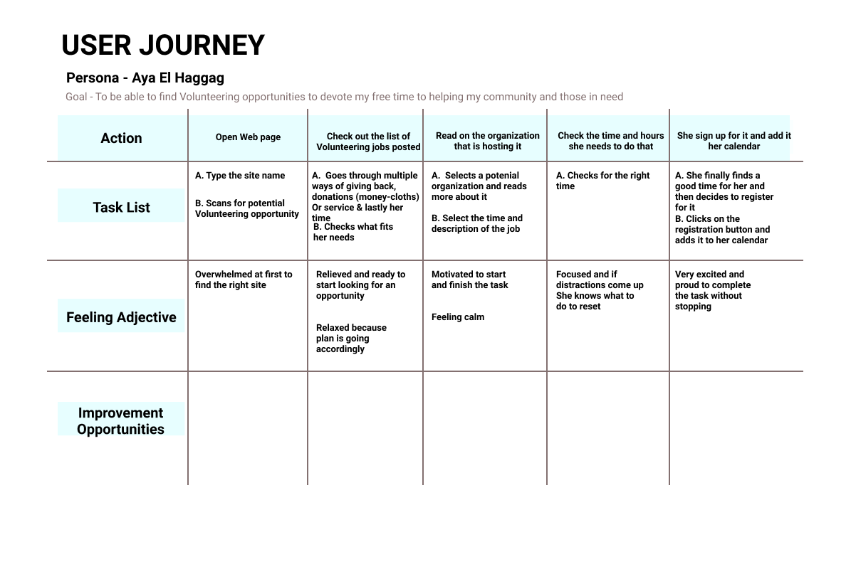 Based on the trends in my affinity map, Iāve noticed that if volunteers donāt know where to go or start to do good, they tend to not get involved or do anything at all. There is no place for people to build meaningful relations whiling giving back to their communities.